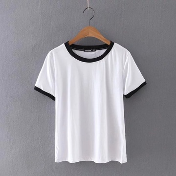 外貿批發(fā)歐美女裝黑邊裝飾光版T恤時尚純棉短袖修身打底衫上衣 /