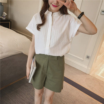 2016夏季最新款韓版高腰百搭休閑短褲與棉麻短袖上衣套裝兩件套女 /