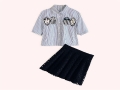 2016春夏新款女清新藍白條紋卡通貼布襯衫+鏤空A型半裙套裝 /