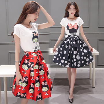 【實拍】2016夏裝新款套裙兩件套圓領中長款連衣裙女裙套裝 /