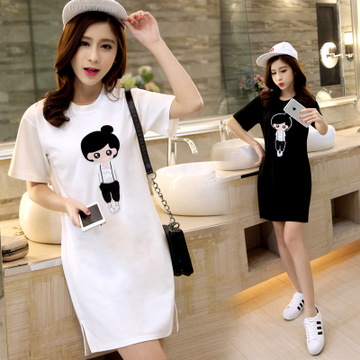 實拍 2016夏季新款簡約時尚卡通寬松中長款短袖T恤女大碼裝 /