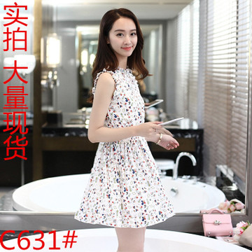 實拍夏裝新款森女無袖蕾絲連衣裙仙女裙修身顯瘦鉤花刺繡長裙 /