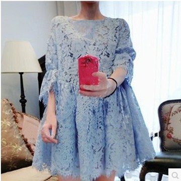 9173 時(shí)尚兩色加大加肥寬松大碼鏤空蕾絲荷葉袖連衣裙200斤現(xiàn)貨 /