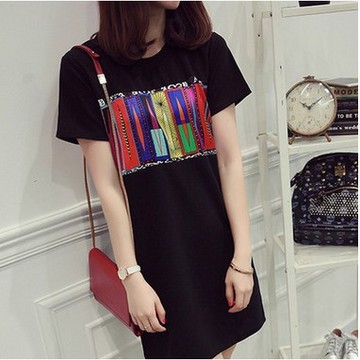 2016夏裝新款韓版特大碼女裝胖mm寬松顯瘦200斤短袖連衣裙D9118 /
