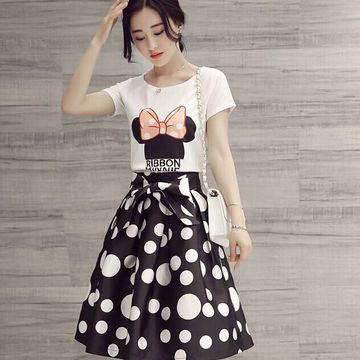 2016夏季新款女裝韓版修身學院風波點印花連衣裙兩件套裙 /
