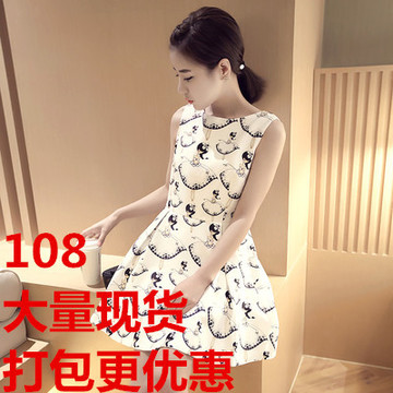 現貨?。?016夏季新款短袖連衣裙女韓版跳舞女孩無袖修身顯瘦 /
