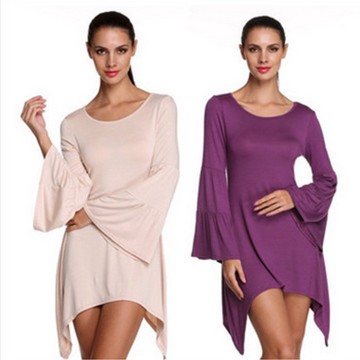 2016新款 歐美爆款不規則下擺喇叭袖連衣裙女裝 /