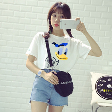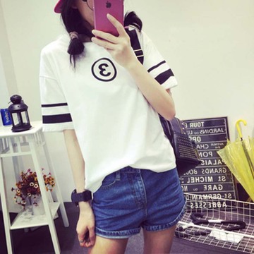 2016夏季夜市地攤貨源女裝短袖t恤女 大版寬松上衣白色學生t恤女 /