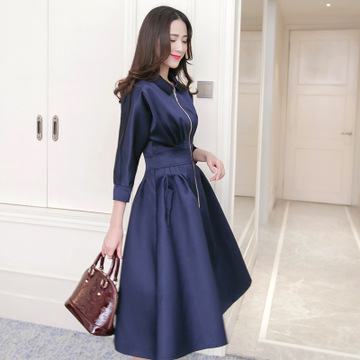 連衣裙女春 歐洲站2016新款女裝收腰中長(zhǎng)款A(yù)字裙子七分袖時(shí)尚氣質(zhì) /