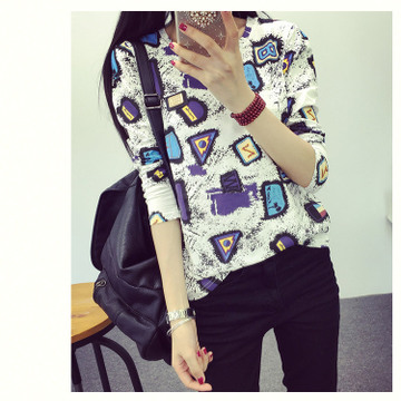 2016春季新款大碼修身韓版女裝長袖t恤女印花純棉打底衫一件代發 /