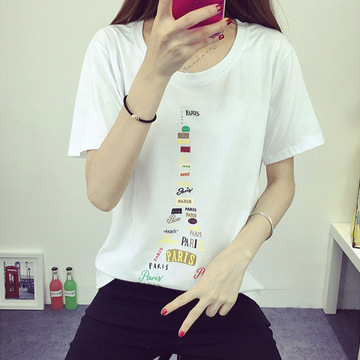 2016春季夏款短袖t恤女韓版寬松印花打底衫純棉圓領大碼學生上衣 /
