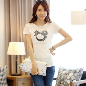 女士t恤2015新款白色女t恤 修身 短袖半袖t恤 女 鑲鉆 廠家批銷 /