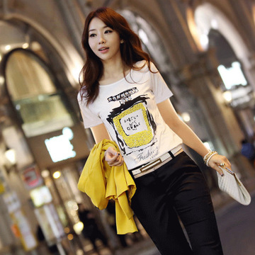 2015年上衣女裝新款韓版修身百搭香水瓶圖案短袖女T恤女品牌上衣 /
