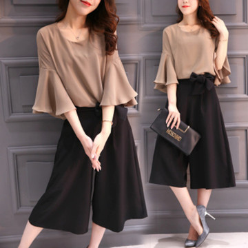 2016新款闊腿褲兩件套女裝春裝雪紡上衣休閑套裝大碼潮 /