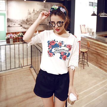 SXE5280舒雪兒2016春裝新款韓版印花中袖T恤女 /