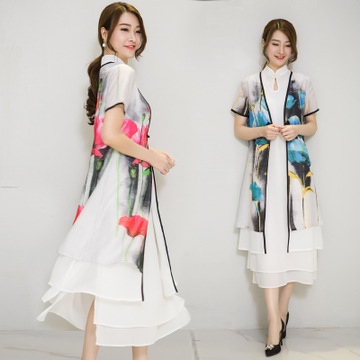 2016夏裝新款復古盤扣中式中旗袍連衣裙兩件套中國風套裝女 /