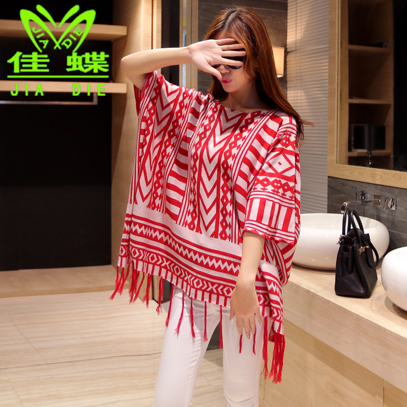 2015秋季新款韓版女裝幾何圖案圓領流蘇毛衣蝙蝠針織衫女式套頭衫 /