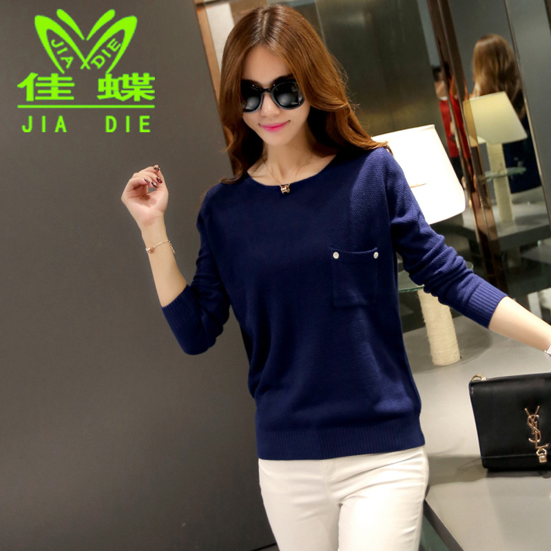 2015秋裝新款韓版女裝圓領套頭純色修身打底毛衣女式針織衫罩衫 /