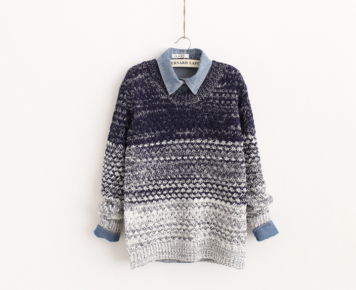 2015秋冬女裝韓版時尚圓領套頭針織衫幾何漸變色毛衣長袖外套 /