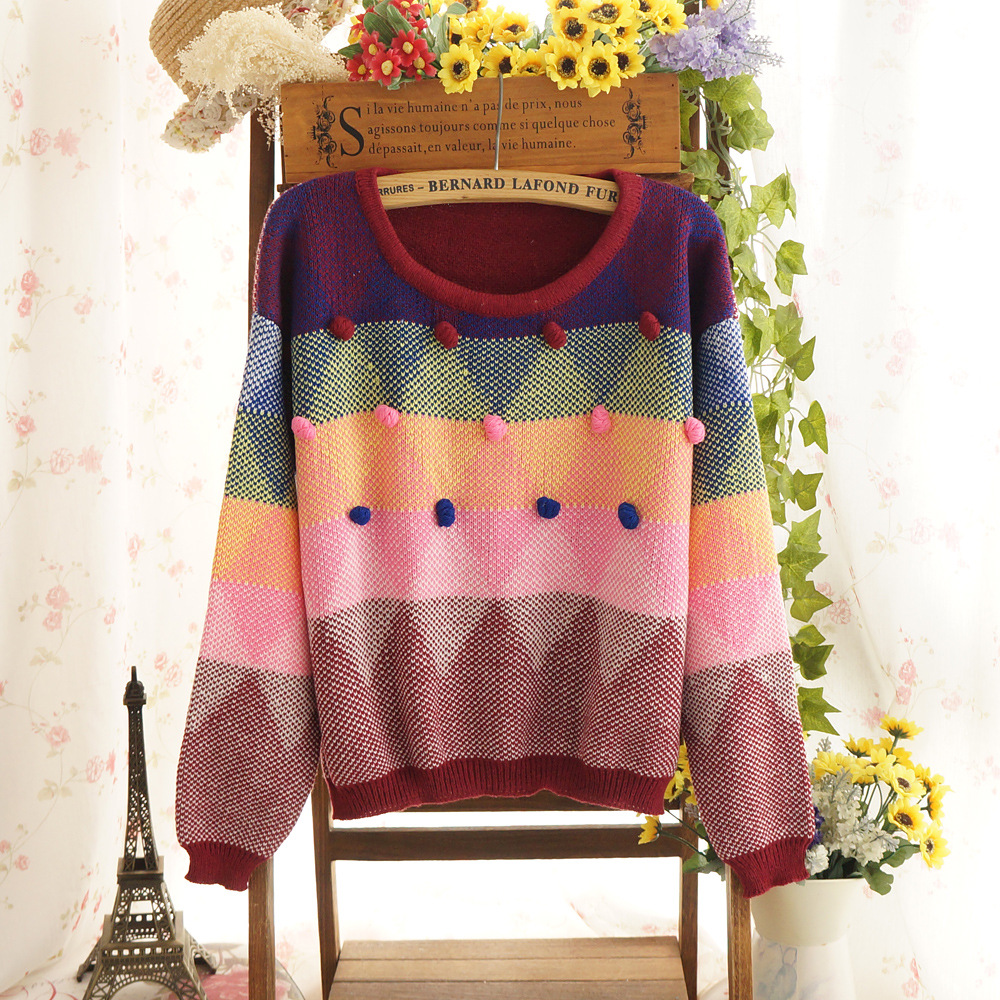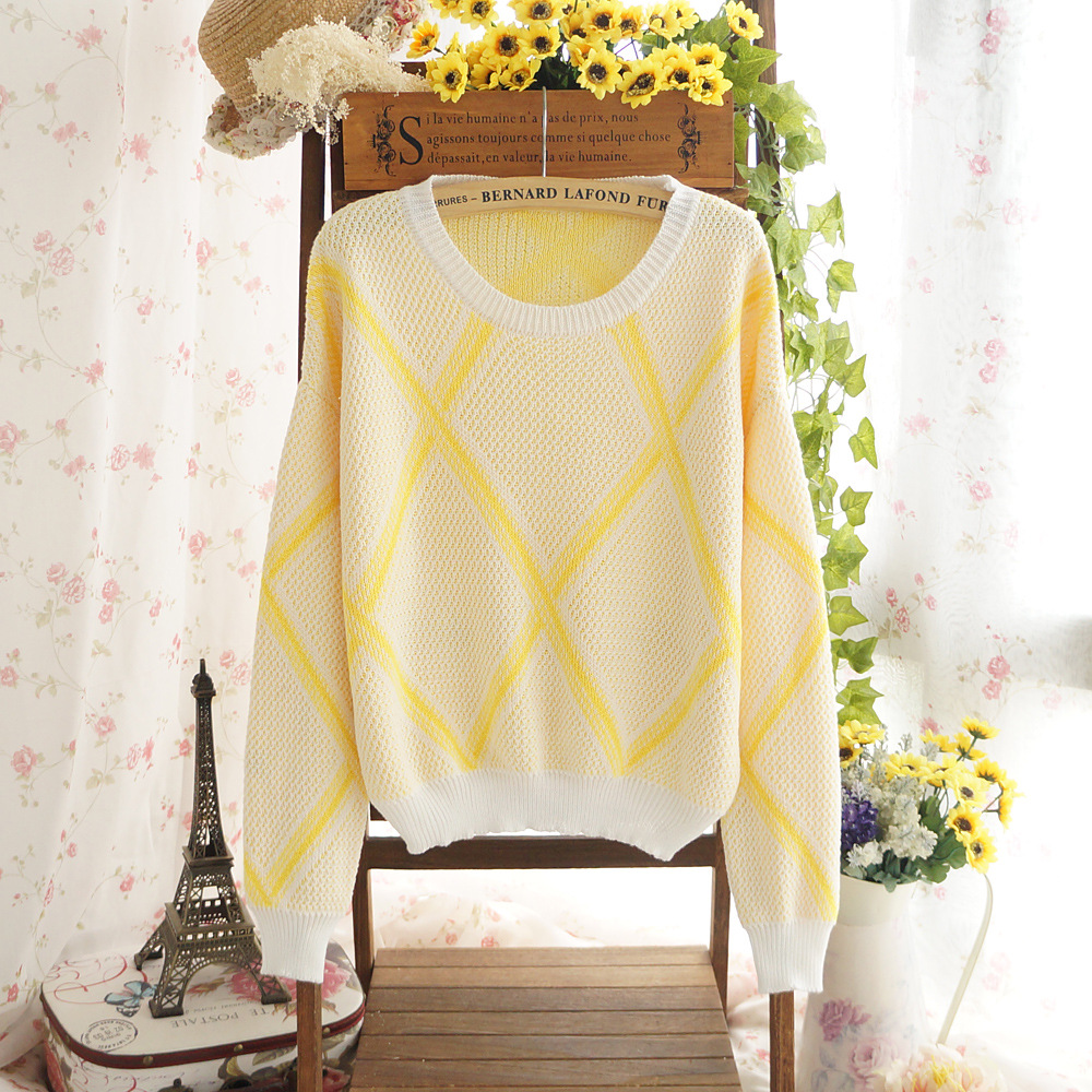 2015秋冬新款女裝長袖外套寬松針織衫學院風日系圓領套頭毛衣 /