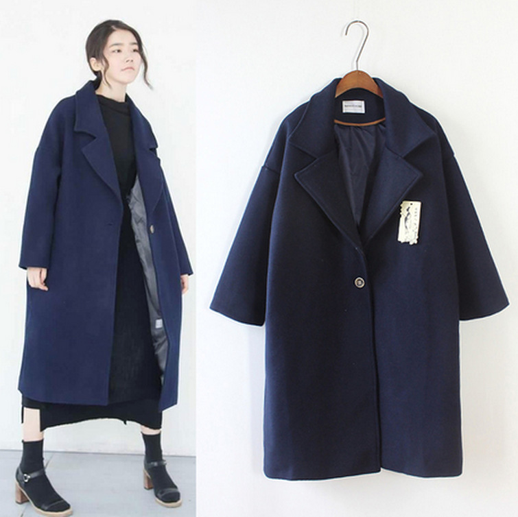 秋冬新款韓版寬松大碼女裝呢子大衣修身顯瘦中長款毛呢外套 /