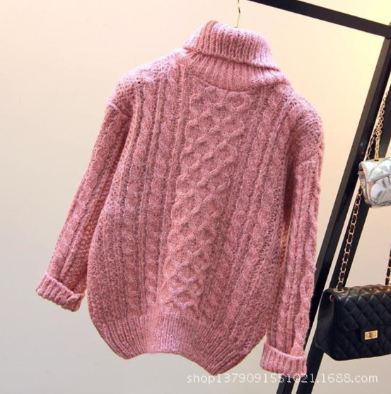 秋冬季韓版麻花高領套頭毛衣外套加厚保暖打底針織衫寬松女款批發 /