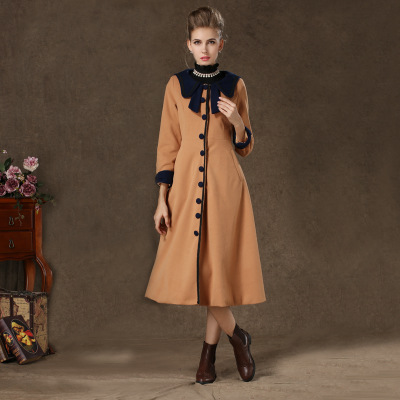 歐洲站2015秋冬新款歐美修身收腰裙擺羊毛呢子大衣女外套 /