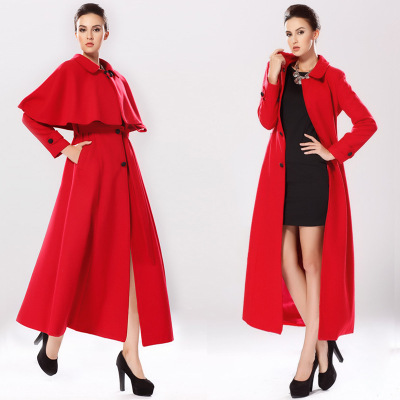 毛呢外套女2015秋冬裝新款歐美長款雙排扣斗篷呢子大衣羊毛大衣女 /