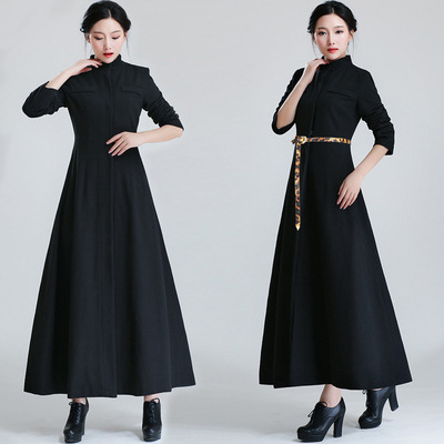 秋冬新款毛呢外套大衣修身收腰大擺歐美時尚呢子大衣外衣女裝 /