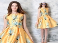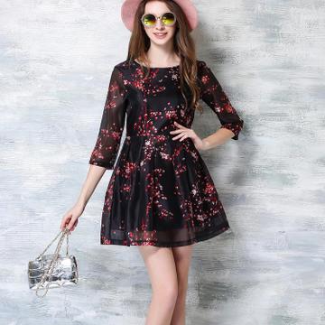 實(shí)拍-2016夏裝新款女裝復(fù)古圓領(lǐng)七分袖印花連衣裙女中裙 /