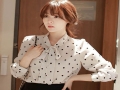 2016春裝新款韓版修身顯瘦百搭波點雪紡長袖蝴蝶結襯衫女 /