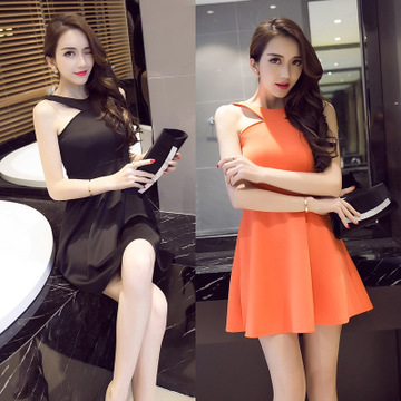 2016夏季新款性感夜店女裝露肩短裙子掛脖收腰顯瘦露肩抹胸連衣裙 /