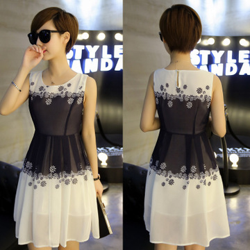 2016新款韓版夏裝時尚中國風(fēng)收腰甜蜜白搭雪紡連衣裙夏 一件代發(fā) /
