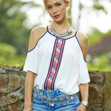 速賣通爆款印花露肩吊帶寬松顯瘦T恤上衣女雪紡衫ebay熱賣 /
