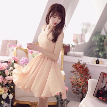2016韓版雪紡無袖連衣裙 后背紐扣性感露腰修身純色短裙廠家批發 /