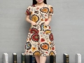 婧桀 2016夏季新款女裝短袖寬松淑女印花修身時(shí)尚名族風(fēng)連衣裙 /