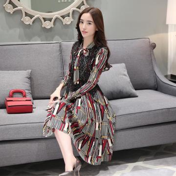 中長款雪紡連衣裙女 2016韓版女裝新款時尚百搭春秋連衣裙批發 /