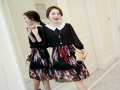 2016春季中長裙長袖新款公主裙修身圓領韓版碎花七分袖女連衣裙 /