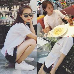 2016夏季新款韓版女裝上衣批發寬松顯瘦純色竹節棉短袖t恤女 /