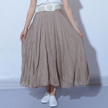 2016夏季新款大擺半身長裙凈色修身高腰半身裙女甜美學院風雪紡裙 /