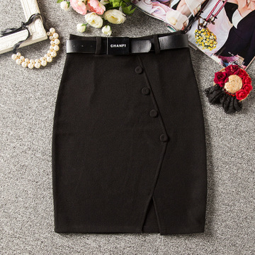 秋科復古高腰包臀彈力裙 修身顯瘦百搭毛呢裙 開叉休閑簡潔小短裙 /