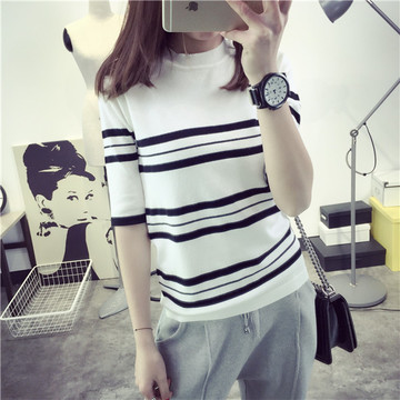 套頭條紋毛衣針織衫打底衫女裝2016新款女裝外套春裝春款韓版 /