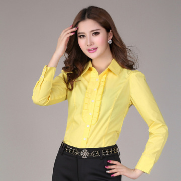 秋冬新品襯衫 氣質荷葉邊女士襯衫 修身OL職業裝 長袖職業襯衫 /