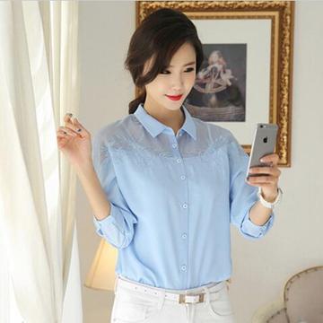 2016春季新品女裝上衣韓版長袖襯衫網紗拼接修身高端OL女士襯衣 /
