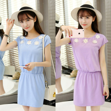 誠招代理 2016夏季新款大碼女裝 中長款短袖修身顯瘦棉麻連衣裙女 /