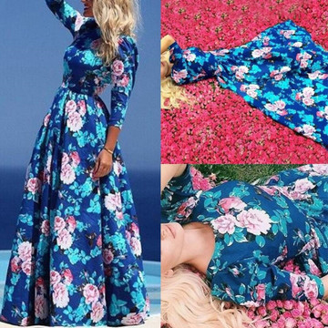 歐洲站2016夏季新款圓領(lǐng)印花氣質(zhì)波西米亞連衣裙 外貿(mào)女裝長裙 /