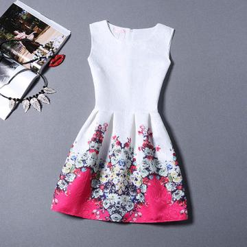 櫻妃閣服飾2016春夏文藝印花小清新無袖蓬蓬裙A字裙 /
