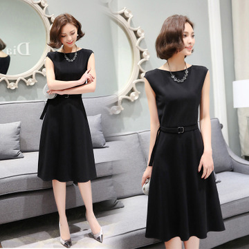 2016年夏季新款女裝韓版時尚大碼無袖連衣裙打底針織中長款連衣裙 /
