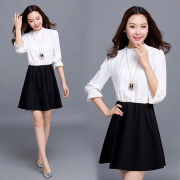 2016夏裝新款女裝打底衫歐洲站修身中袖連衣裙雪紡衫A字套裝裙潮 /