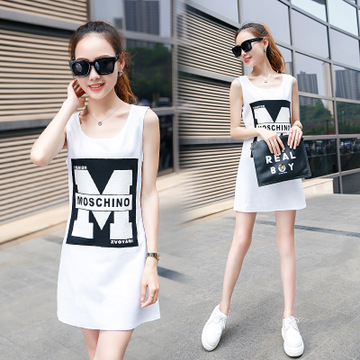 韓版印花無袖T連衣裙 女裝2016夏顯瘦字母打底段裙女潮代發混批 /